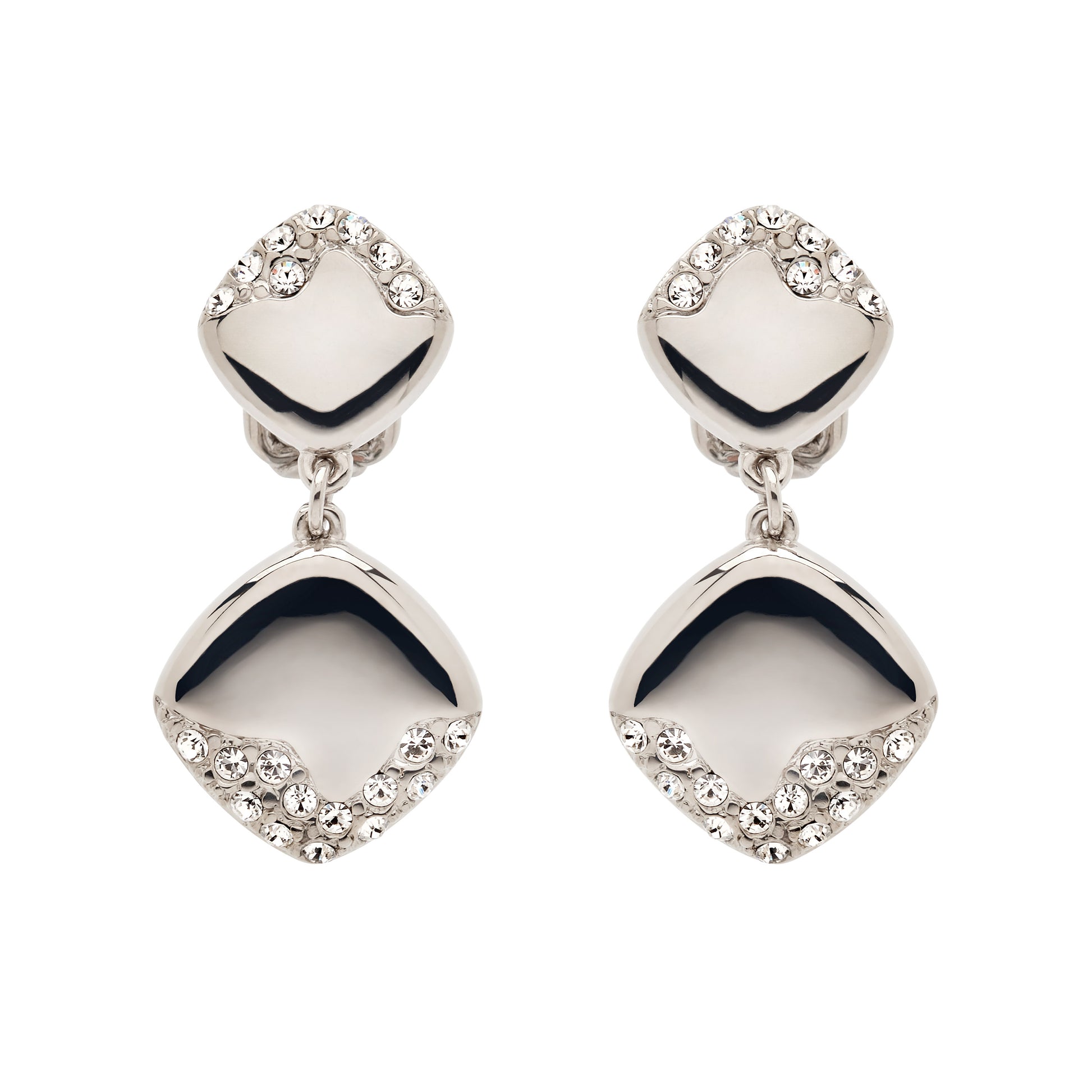 The comfortable push back fitting provides a secure feel and makes these earrings ideal for non-pierced or sensitive ears. In addition, the curved crystal design adds a sculptural touch, giving the earrings a bold yet refined style. You can wear them with simple pieces for an understated look, or pair them with more glamorous accessories when you want extra shine.