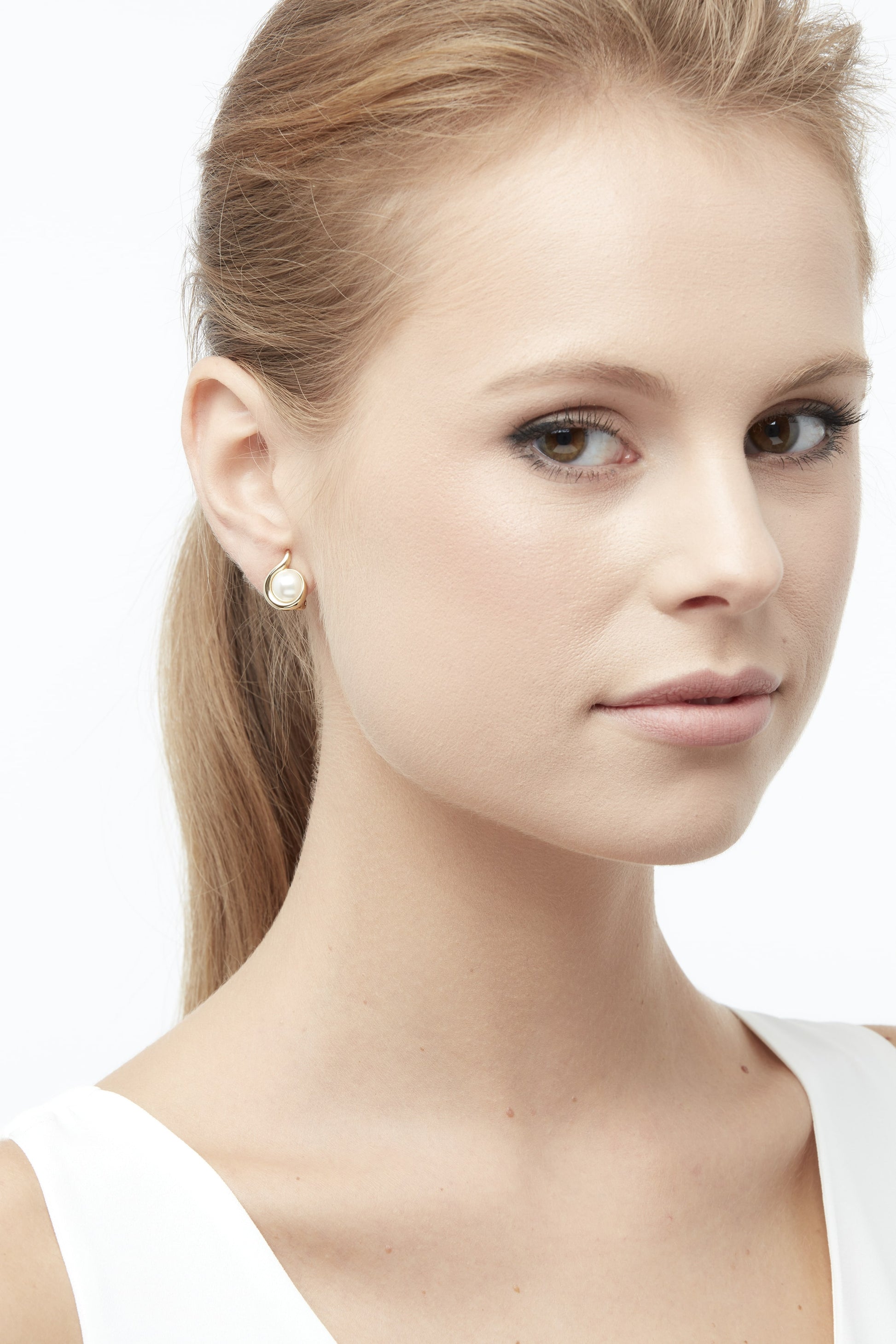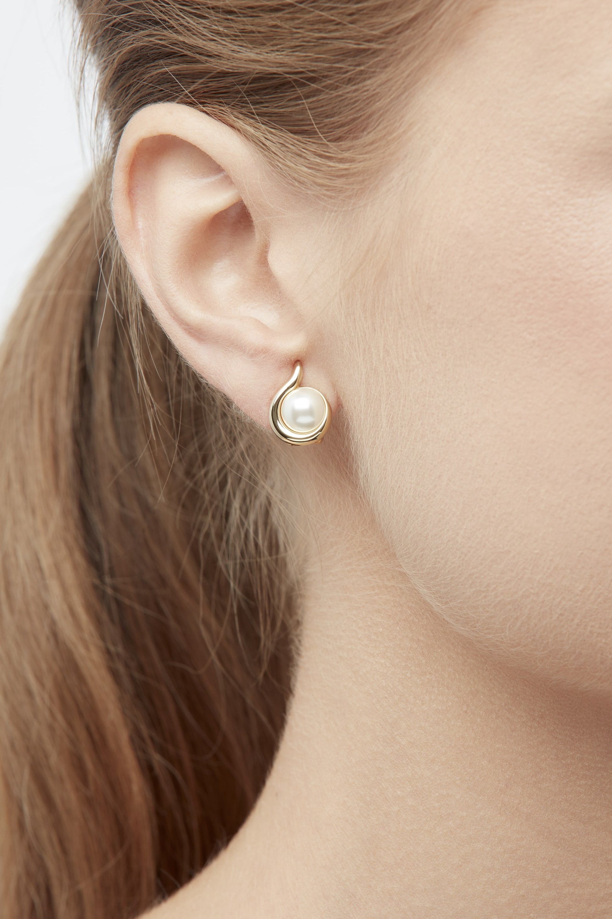 The perfect versatile occasion piece of jewellery, designed with a classic white faux pearl set in a polished gold curl design and fitted with a silicone cushion back these clip on earrings are ideal for non pierced ears.