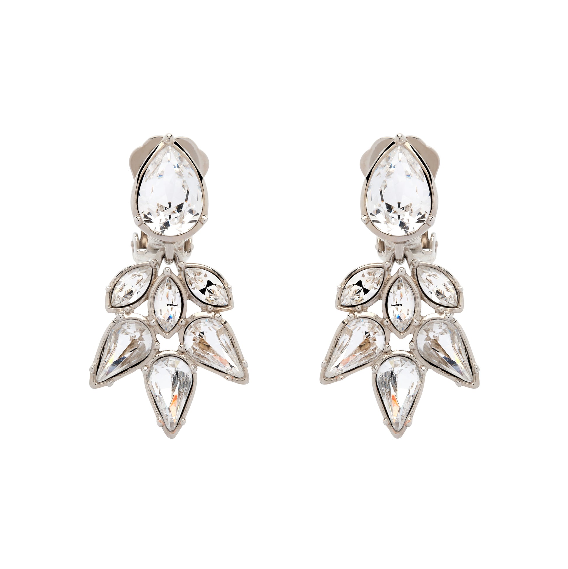 Bring high octane glamour with these new Platinum plated crystal chandelier clip on earrings. Designed to create extra sparkle, we have added our signature silicone backs for maximum comfort.