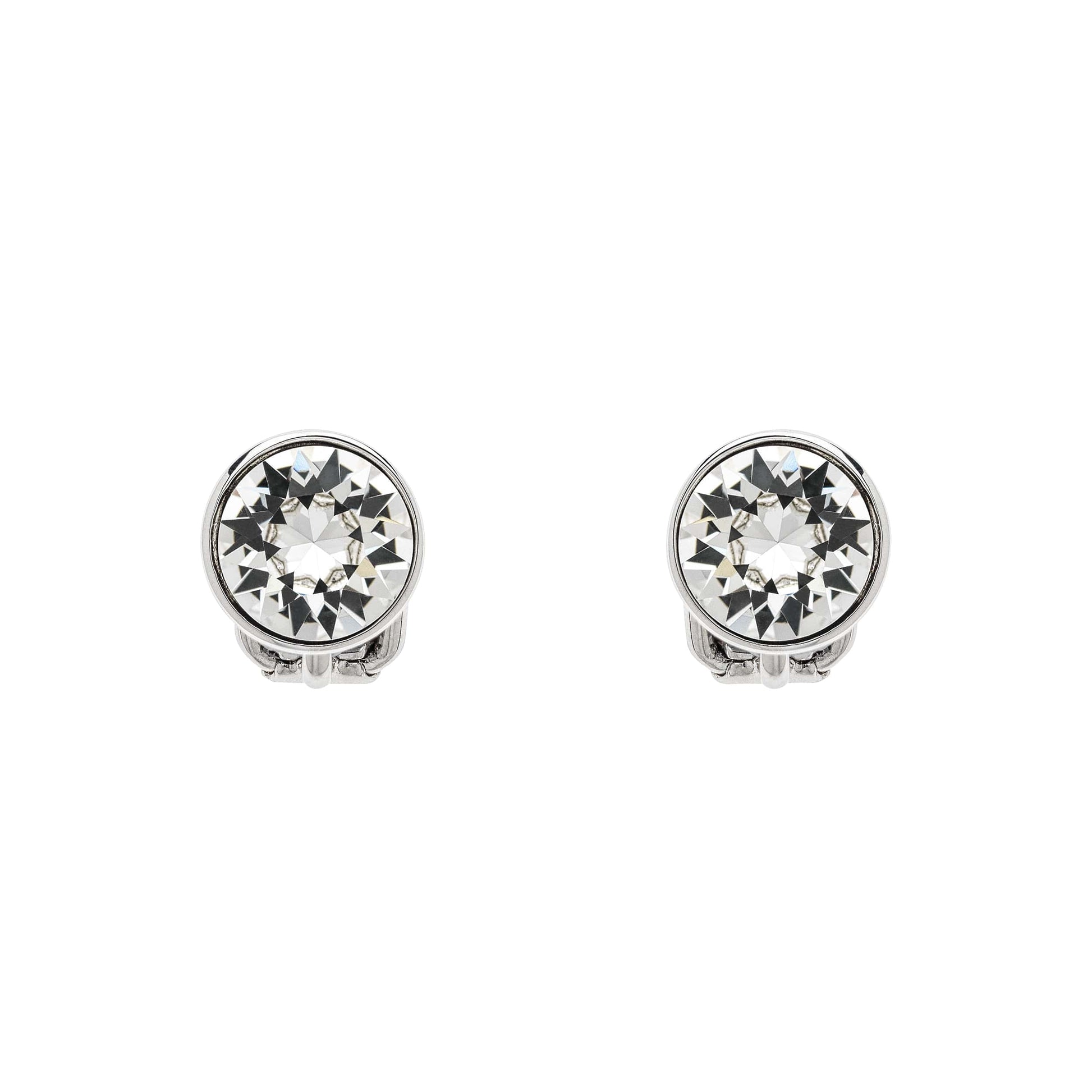 A single stunning sparkling Crystal stud set in polished platinum and fitted with a push back clasp, these clip on earrings are a must for every jewellery collection.