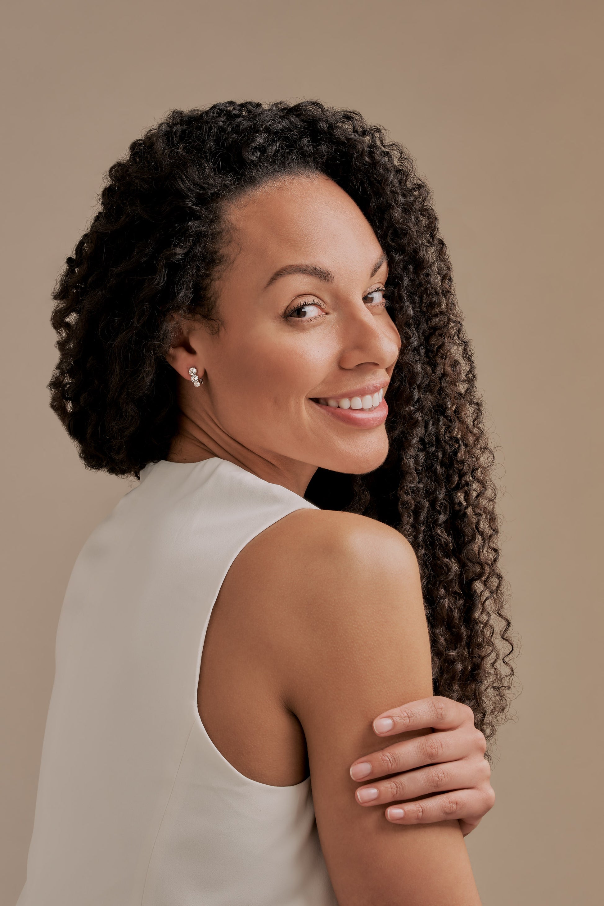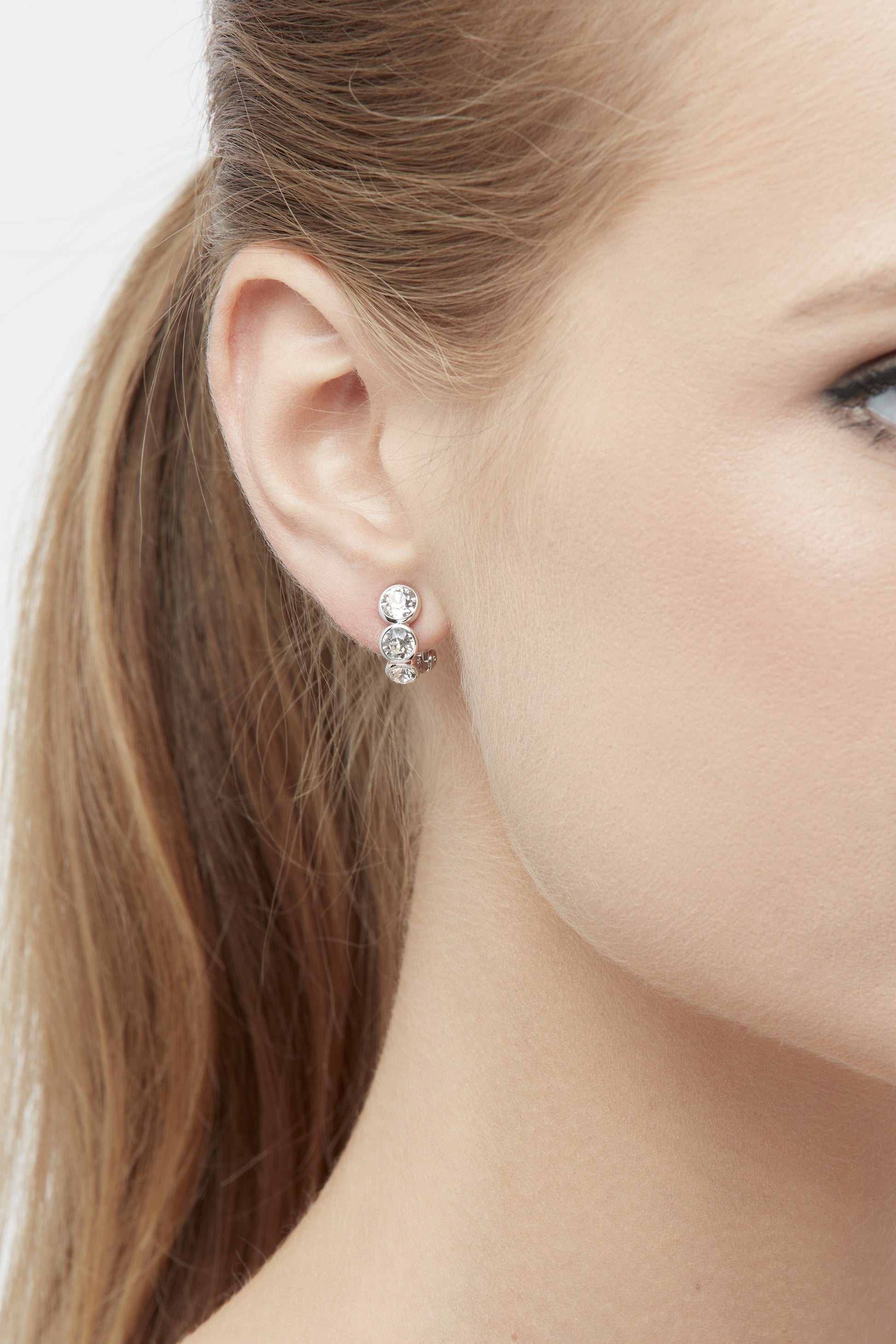 A trio of sparkling crystals set in a polished Platinum plate setting and fitted with a silicone comfort back these clip on earrings are perfect for non pierced or sensitive ears.