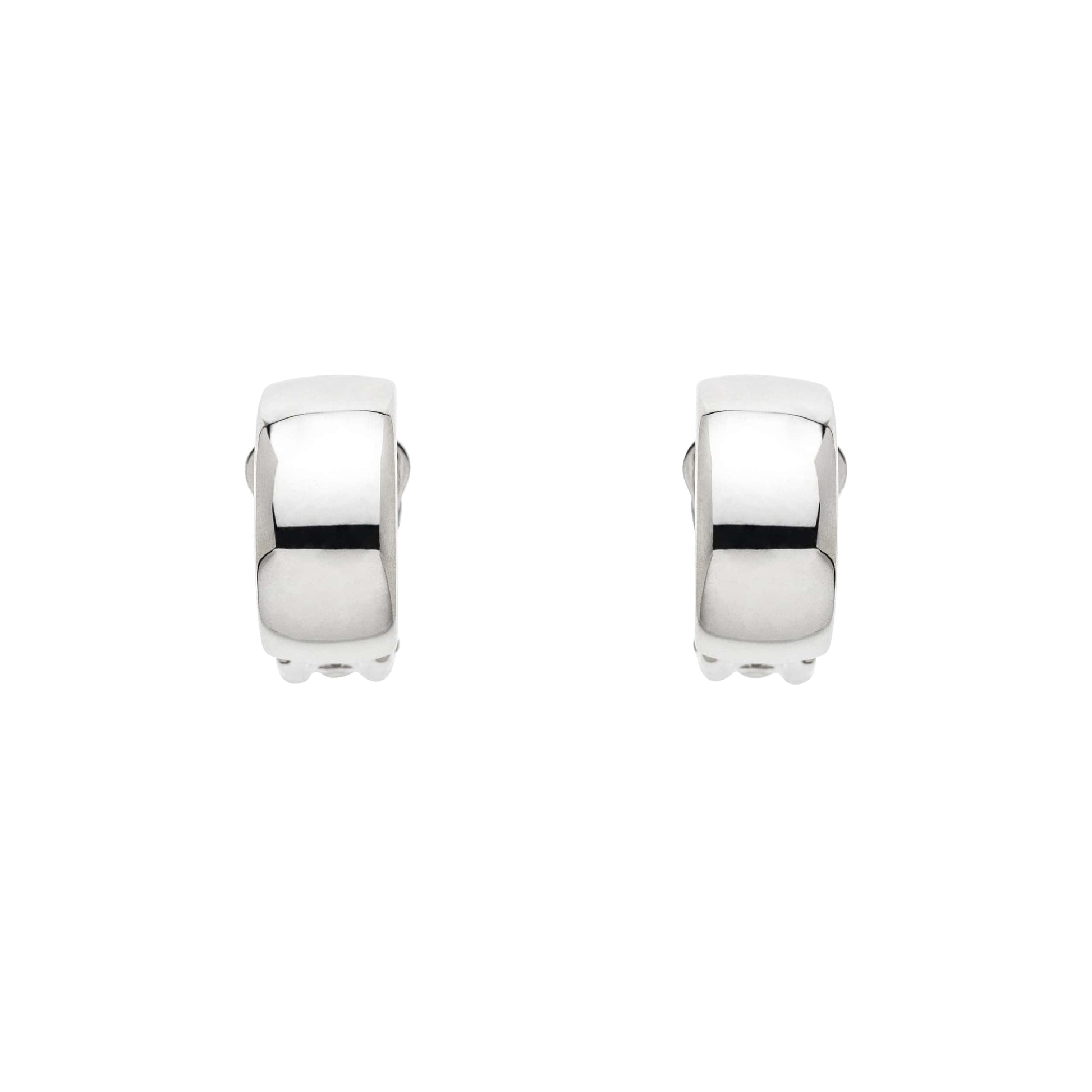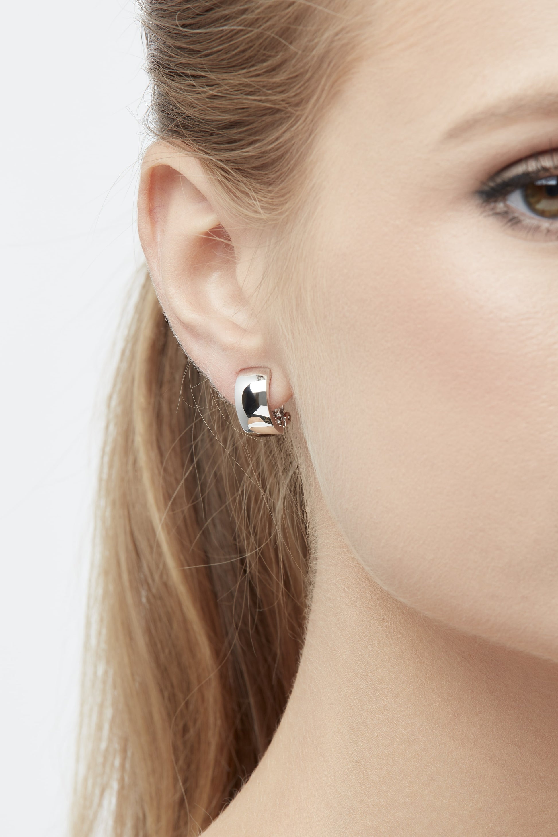 Elegant polished platinum plated curve design clip on earrings with a fitted silicone back for comfort, these earrings are the ultimate go to accessory.